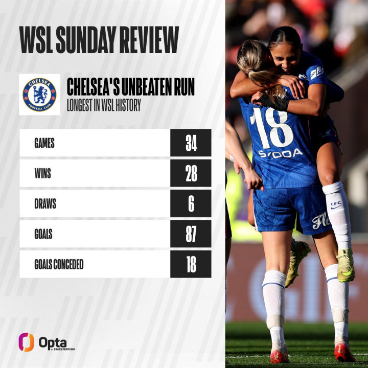 Chelsea women s football team is undefeated in 34 league games, breaking the historical record previously held by themselves